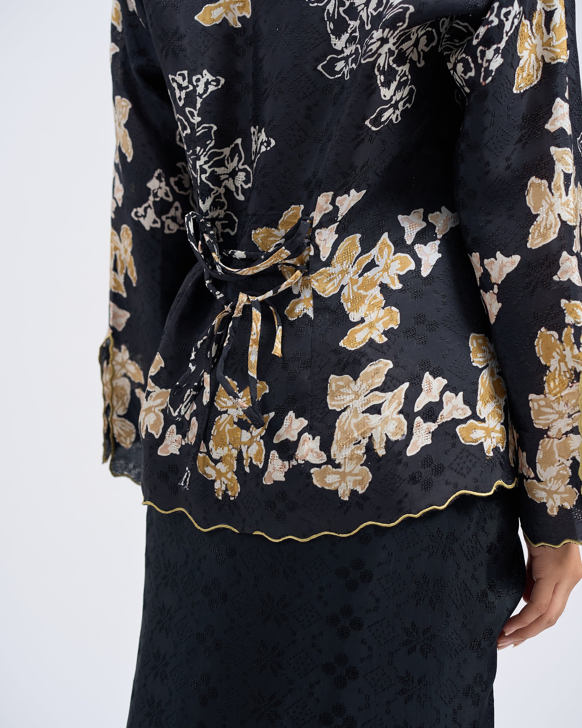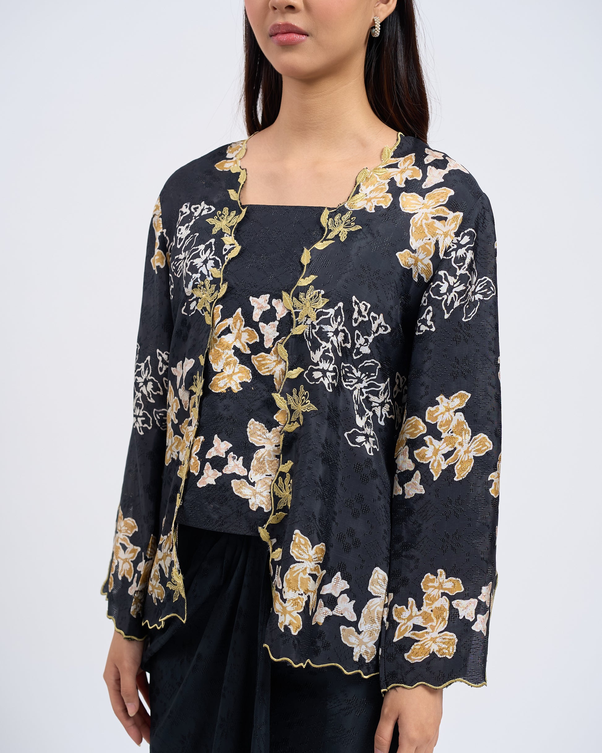 - The placement of motifs, colour tones, and sulam (embroidery) details will vary from one garment to another. Each set is uniquely crafted and no two pieces are totally identical, making your garment exclusive to you.