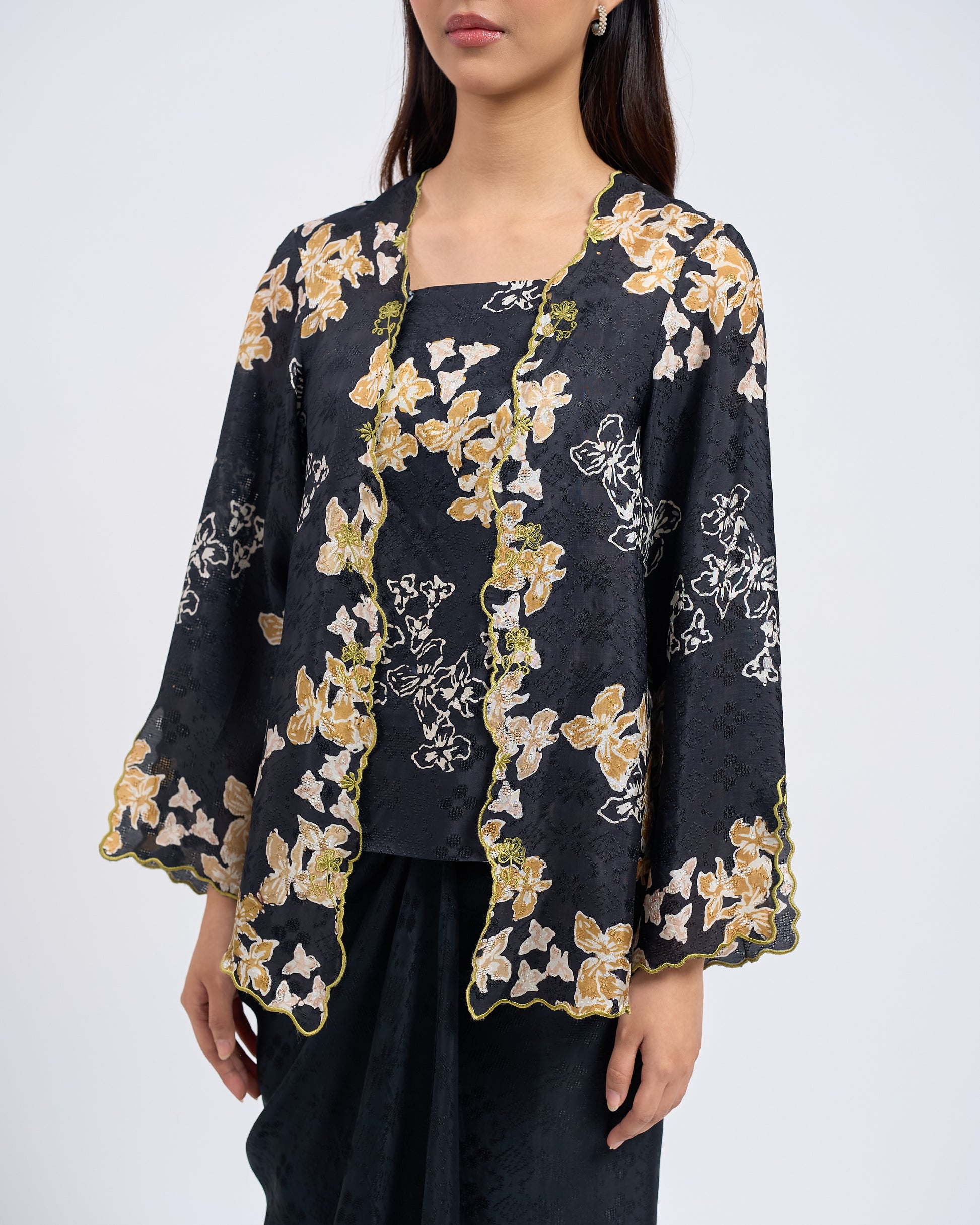 - The placement of motifs, colour tones, and sulam (embroidery) details will vary from one garment to another. Each set is uniquely crafted and no two pieces are totally identical, making your garment exclusive to you.