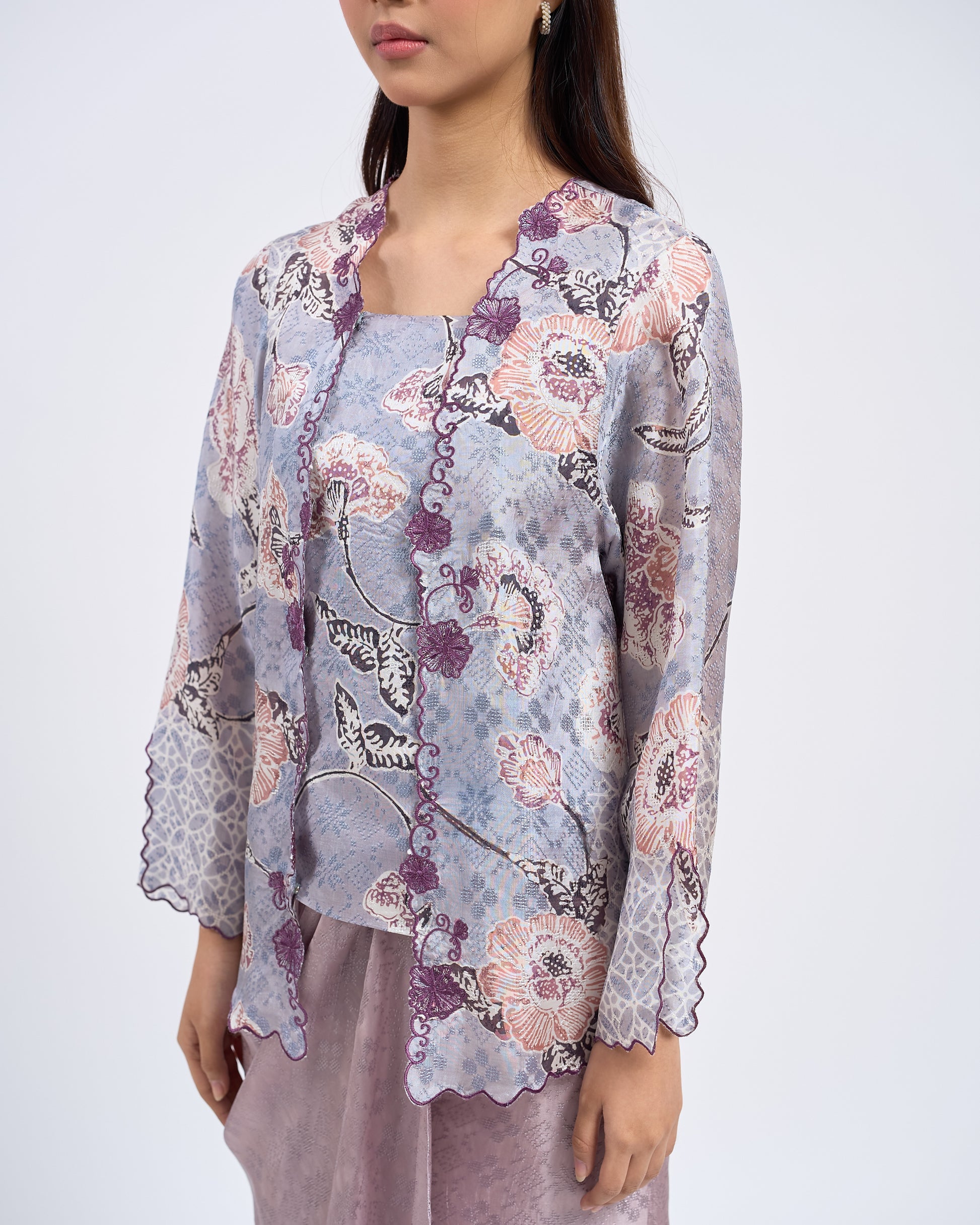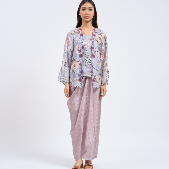 AIRIS reimagines the classic kutu baru with a detachable front panel and an adjustable back corset. Designed using THEA’s in-house semi-silk batik print, it blends heritage charm with a modern, flattering fit.