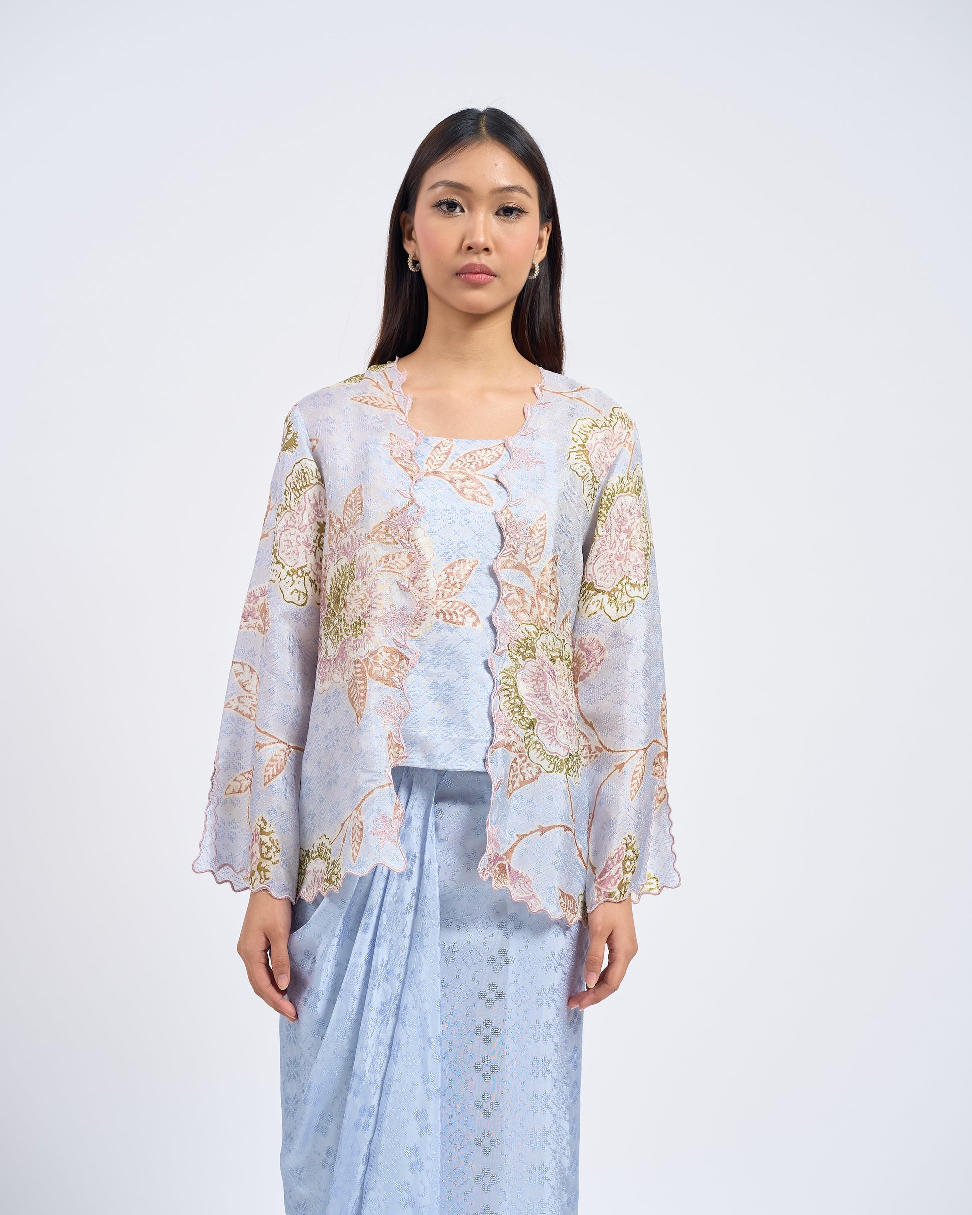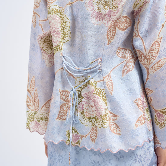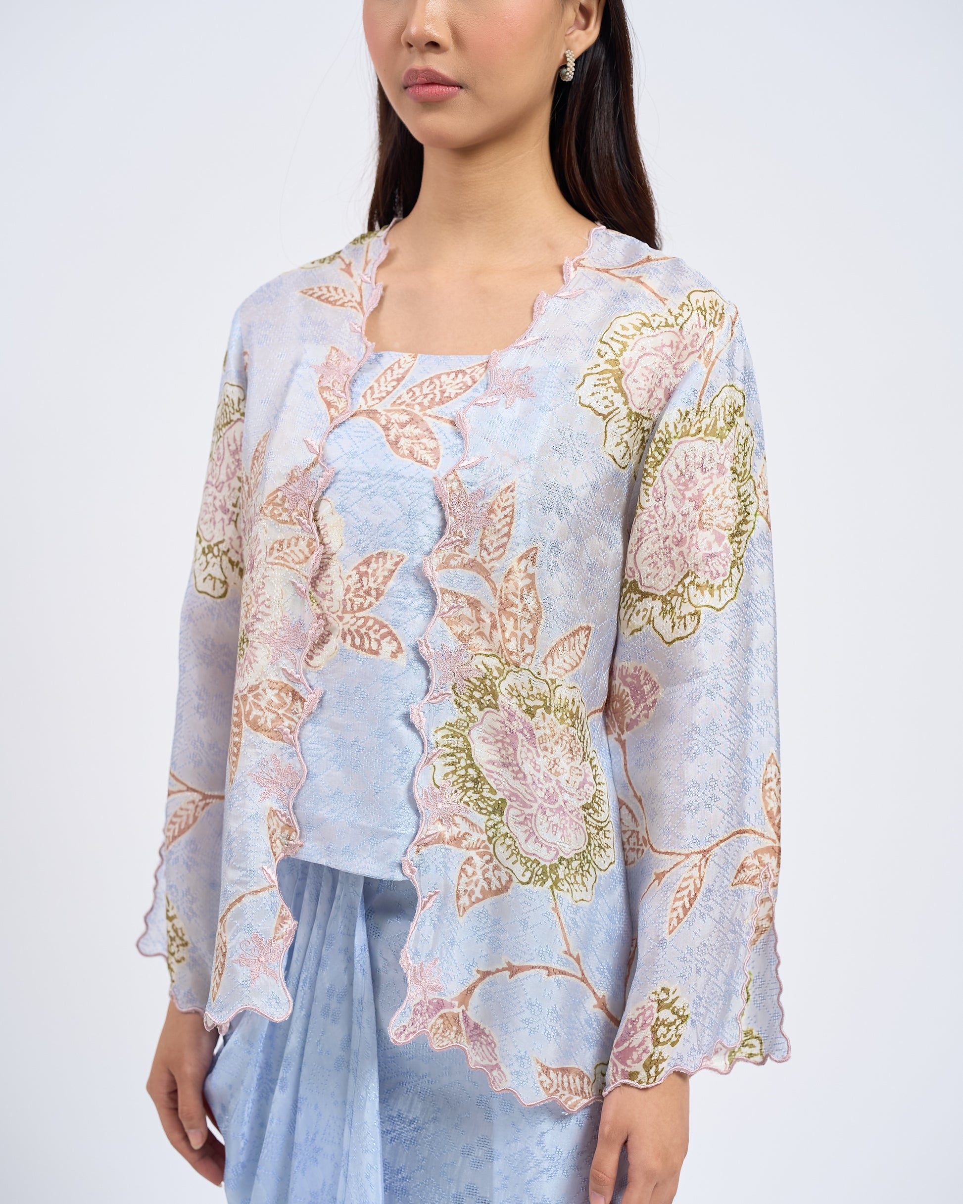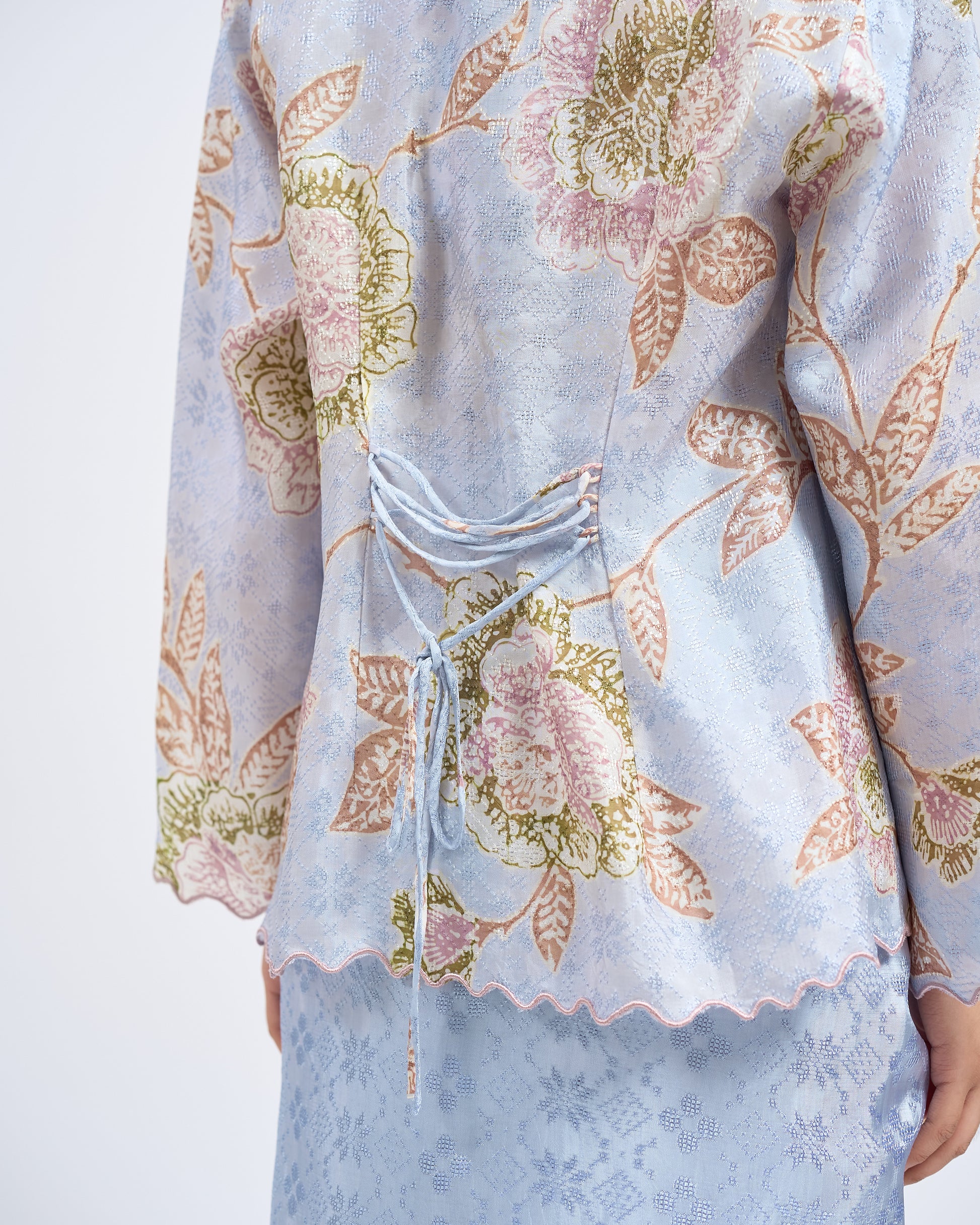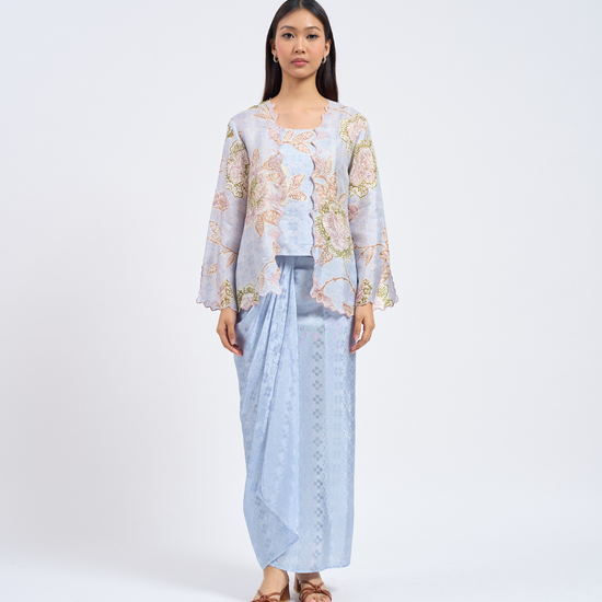 AIRIS reimagines the classic kutu baru with a detachable front panel and an adjustable back corset. Designed using THEA’s in-house semi-silk batik print, it blends heritage charm with a modern, flattering fit.