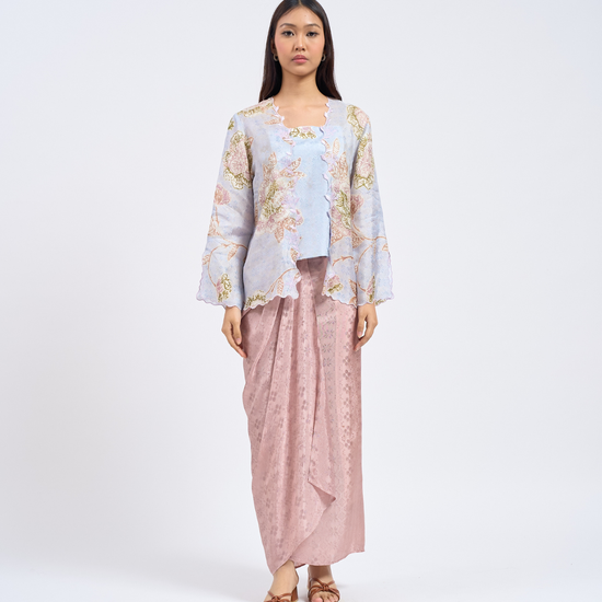 AIRIS reimagines the classic kutu baru with a detachable front panel and an adjustable back corset. Designed using THEA’s in-house semi-silk batik print, it blends heritage charm with a modern, flattering fit.