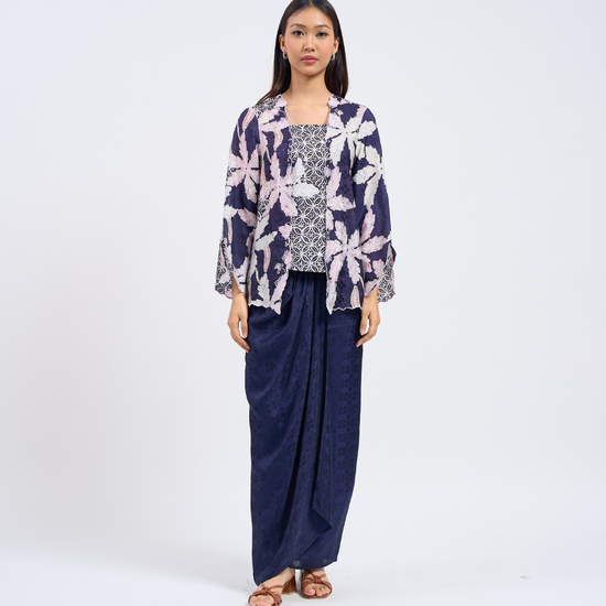 AIRIS reimagines the classic kutu baru with a detachable front panel and an adjustable back corset. Designed using THEA’s in-house semi-silk batik print, it blends heritage charm with a modern, flattering fit.