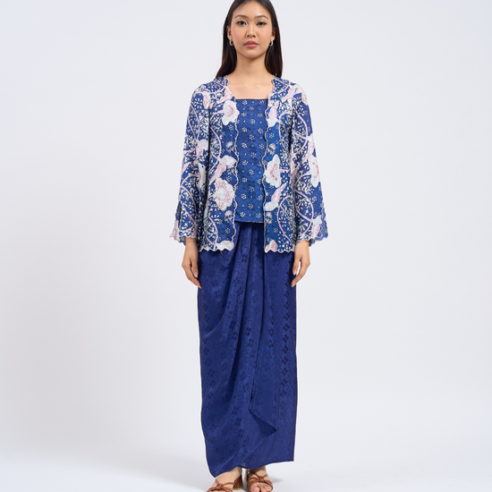 AIRIS reimagines the classic kutu baru with a detachable front panel and an adjustable back corset. Designed using THEA’s in-house semi-silk batik print, it blends heritage charm with a modern, flattering fit.