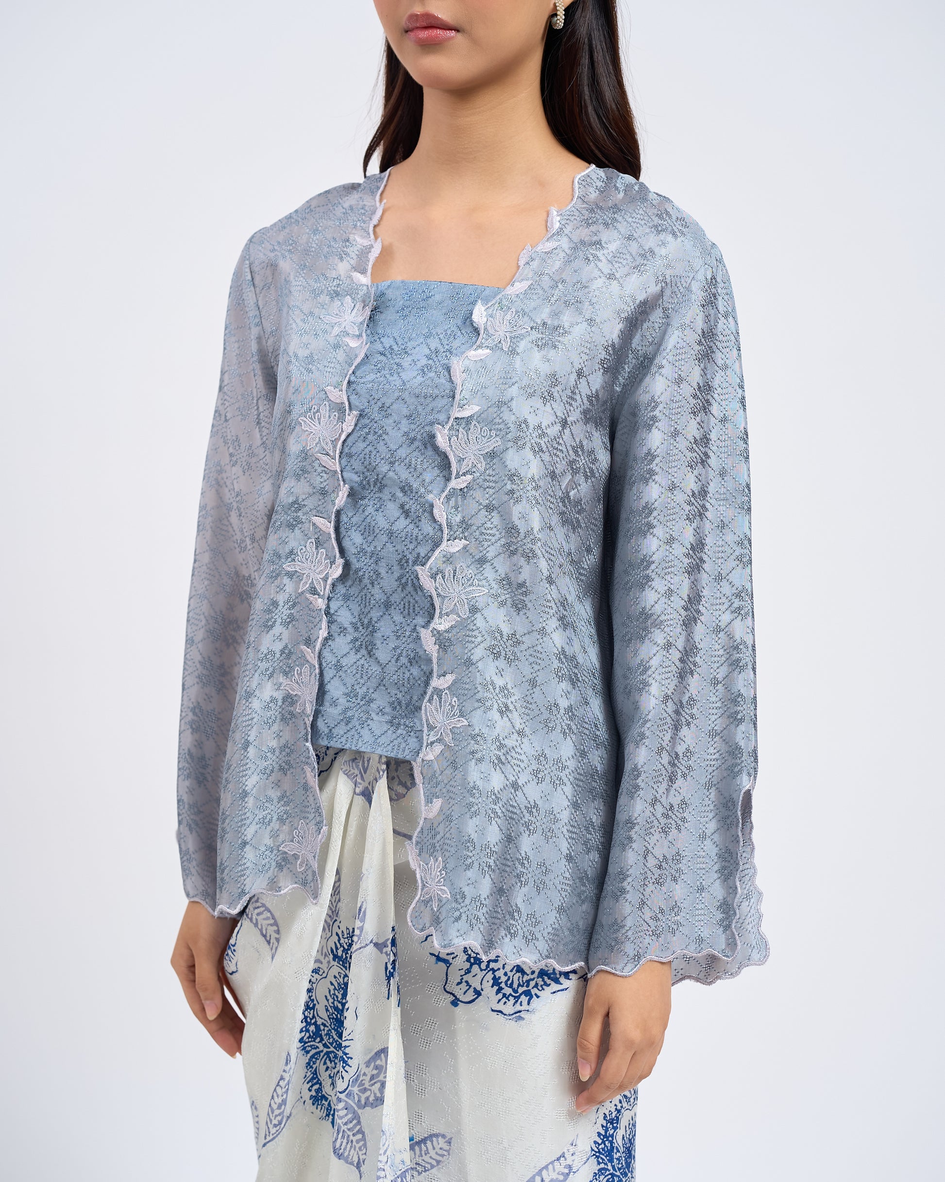 AIRIS reimagines the classic kutu baru with a detachable front panel and an adjustable back corset. Designed using THEA’s in-house semi-silk batik print, it blends heritage charm with a modern, flattering fit.