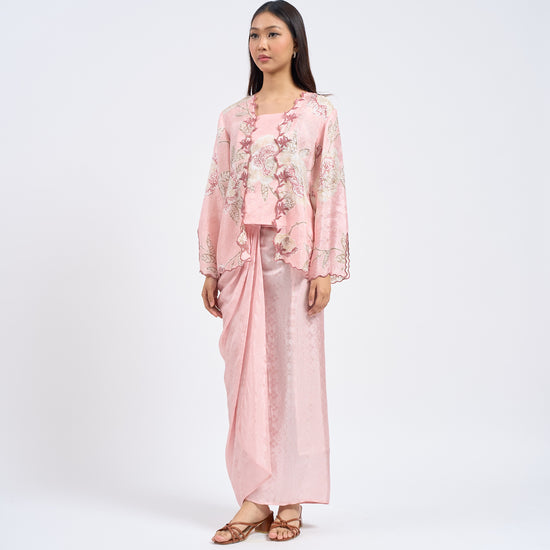 AIRIS reimagines the classic kutu baru with a detachable front panel and an adjustable back corset. Designed using THEA’s in-house semi-silk batik print, it blends heritage charm with a modern, flattering fit.