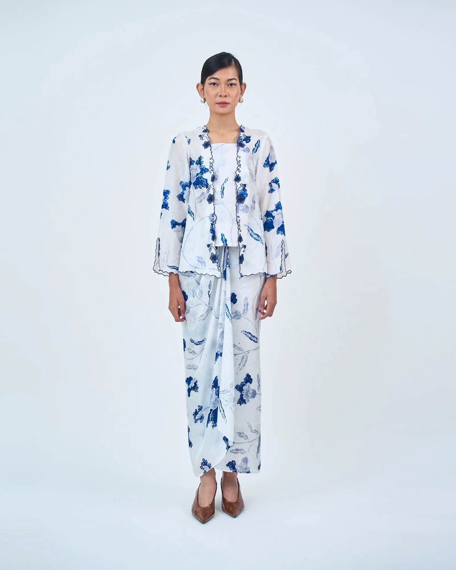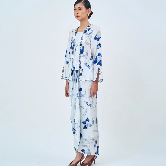 AIRIS reimagines the classic kutu baru with a detachable front panel and an adjustable back corset. Designed using THEA’s in-house semi-silk batik print, it blends heritage charm with a modern, flattering fit.