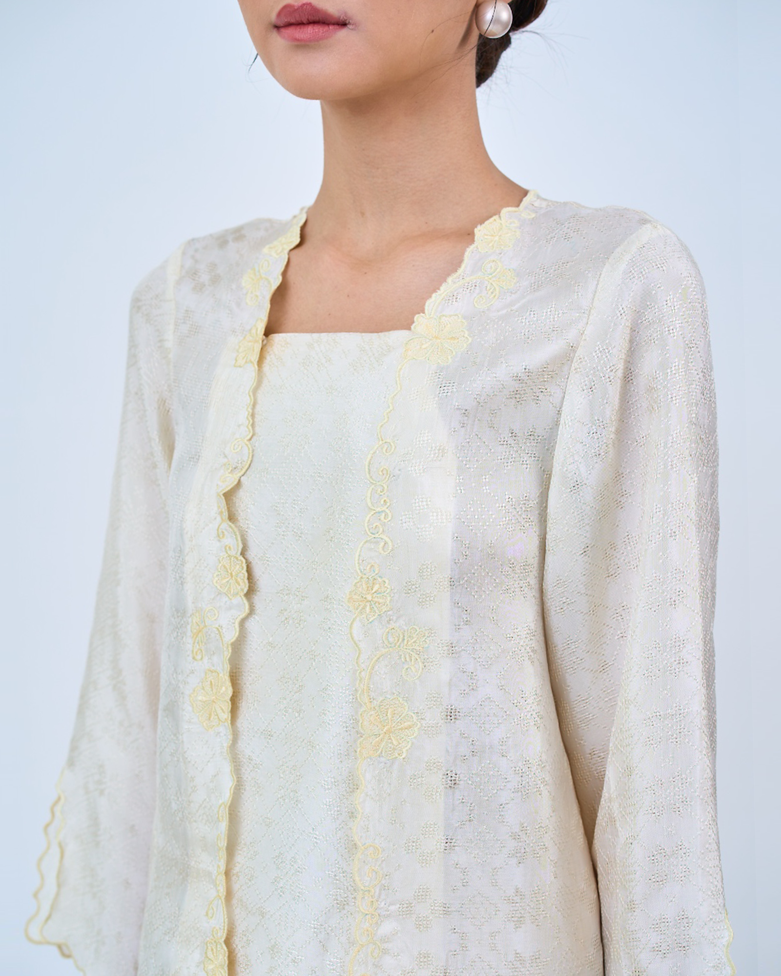 AIRIS reimagines the classic kutu baru with a detachable front panel and an adjustable back corset. Designed using THEA’s in-house semi-silk batik print, it blends heritage charm with a modern, flattering fit.