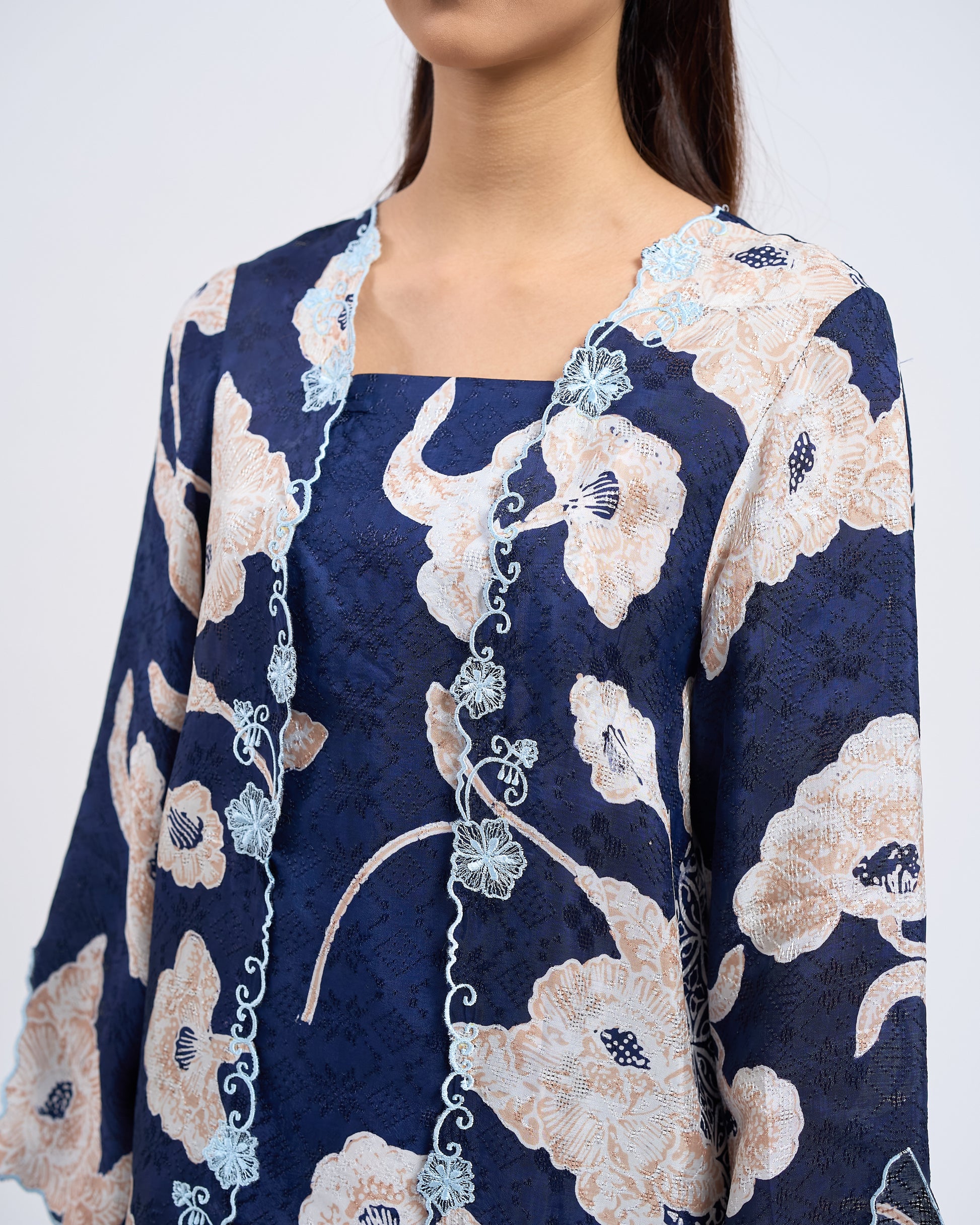 - The placement of motifs, colour tones, and sulam (embroidery) details will vary from one garment to another. Each set is uniquely crafted and no two pieces are totally identical, making your garment exclusive to you.