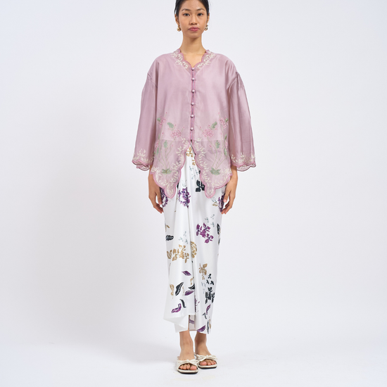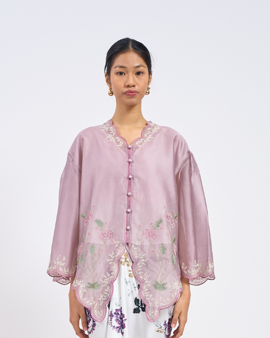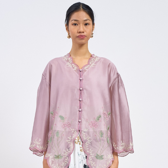 The AYA Kebaya Top brings the timeless charm of the kebaya into a softer, modern silhouette. Designed with gentle flare sleeves and scalloped edges, its intricate embroidery adds a delicate artisanal touch that elevates the entire look.