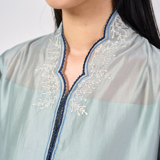 The AYA Kebaya Top brings the timeless charm of the kebaya into a softer, modern silhouette. Designed with gentle flare sleeves and scalloped edges, its intricate embroidery adds a delicate artisanal touch that elevates the entire look.