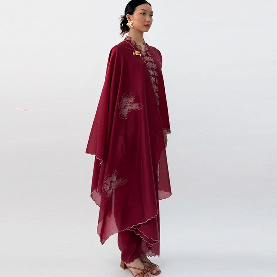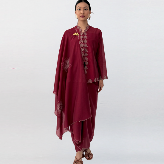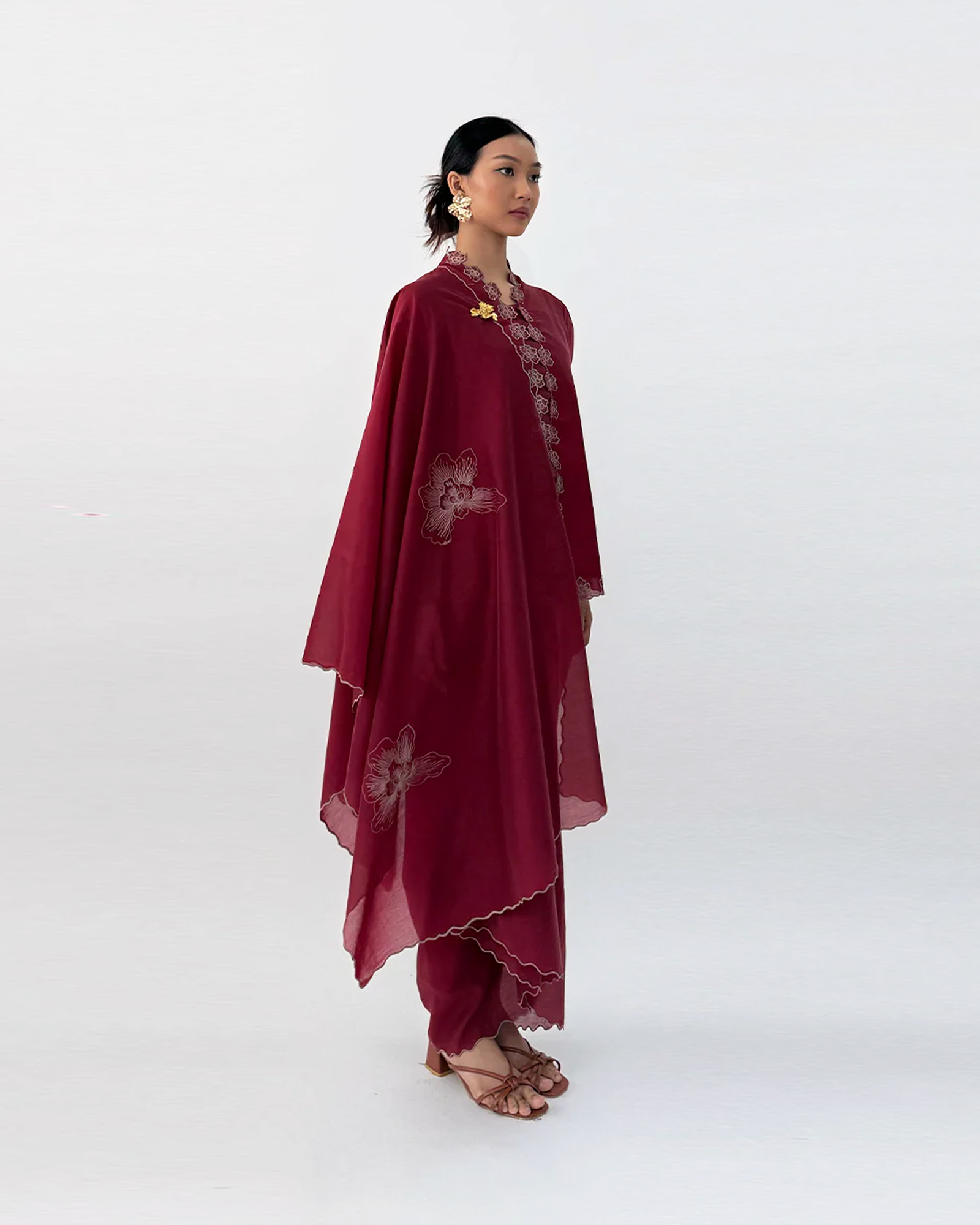 - The placement of motifs, colour tones, and sulam (embroidery) details will vary from one garment to another. Each set is uniquely crafted and no two pieces are totally identical, making your garment exclusive to you.