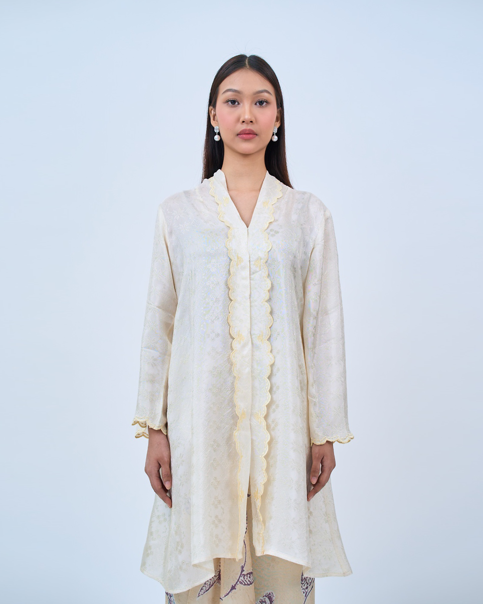 WARDAH Kebarung blends the flair of kebaya and kurung panjang silhouettes. Designed with front snap fastening and crafted fully from our inhouse semi-silk batik print, it’s a THEA Classic.