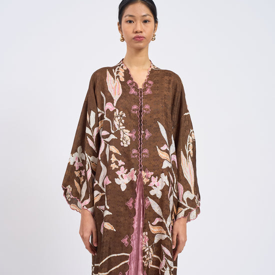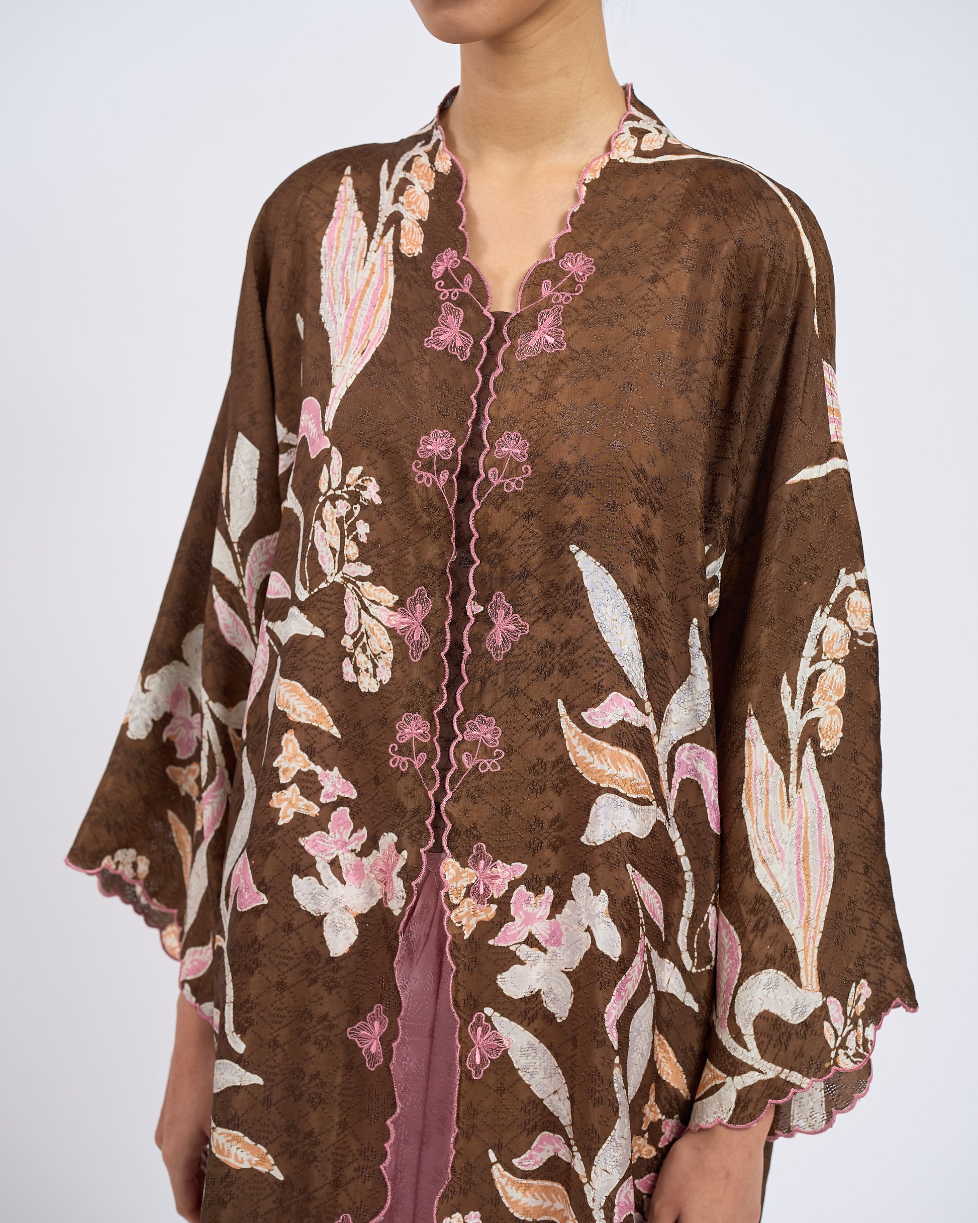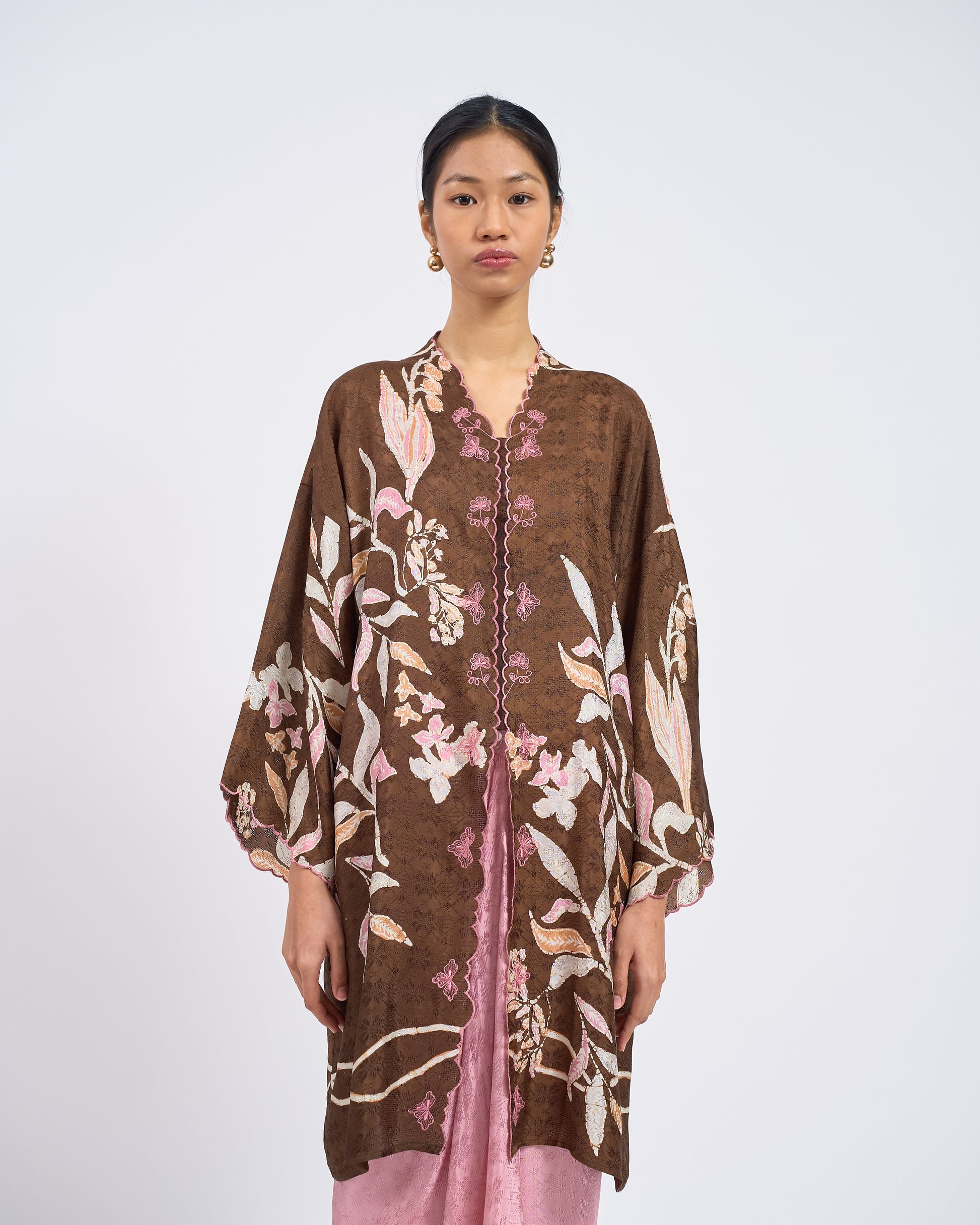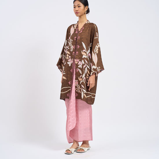 KHADEEJA is a modern kebaya labuh inspired by traditional kebarung silhouettes. Featuring drop shoulders, a straight cut and front snap fastening, it’s made for women who love structure with ease.