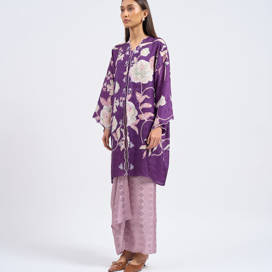 KHADEEJA is a modern kebaya labuh inspired by traditional kebarung silhouettes. Featuring drop shoulders, a straight cut and front snap fastening, it’s made for women who love structure with ease.