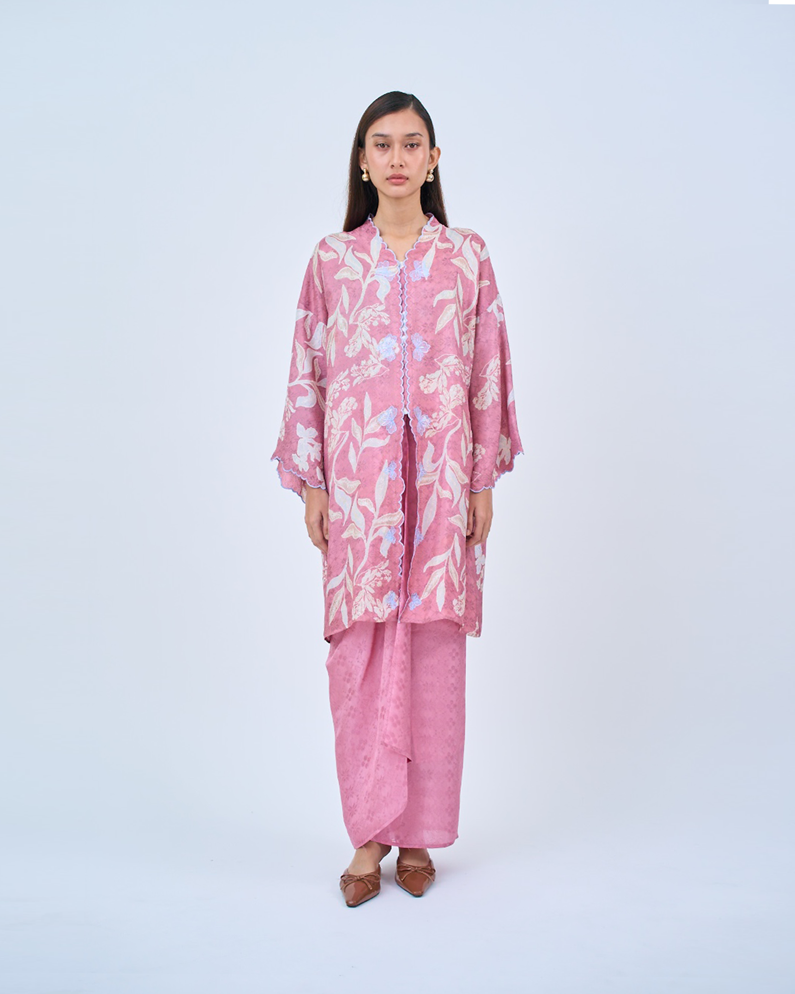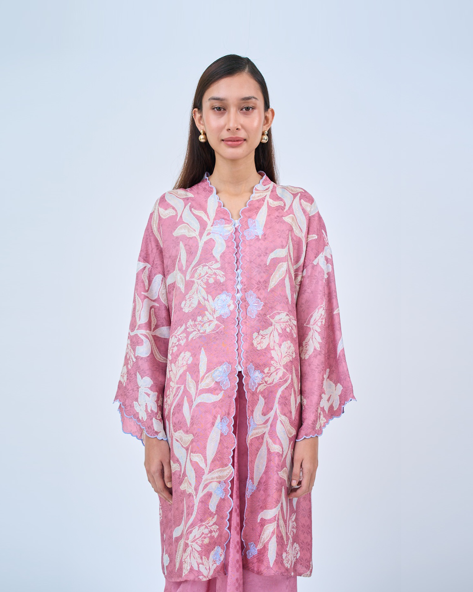 KHADEEJA is a modern kebaya labuh inspired by traditional kebarung silhouettes. Featuring drop shoulders, a straight cut and front snap fastening, it’s made for women who love structure with ease.