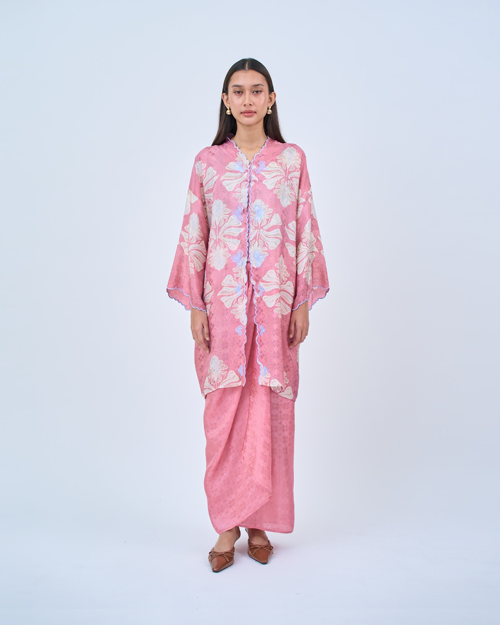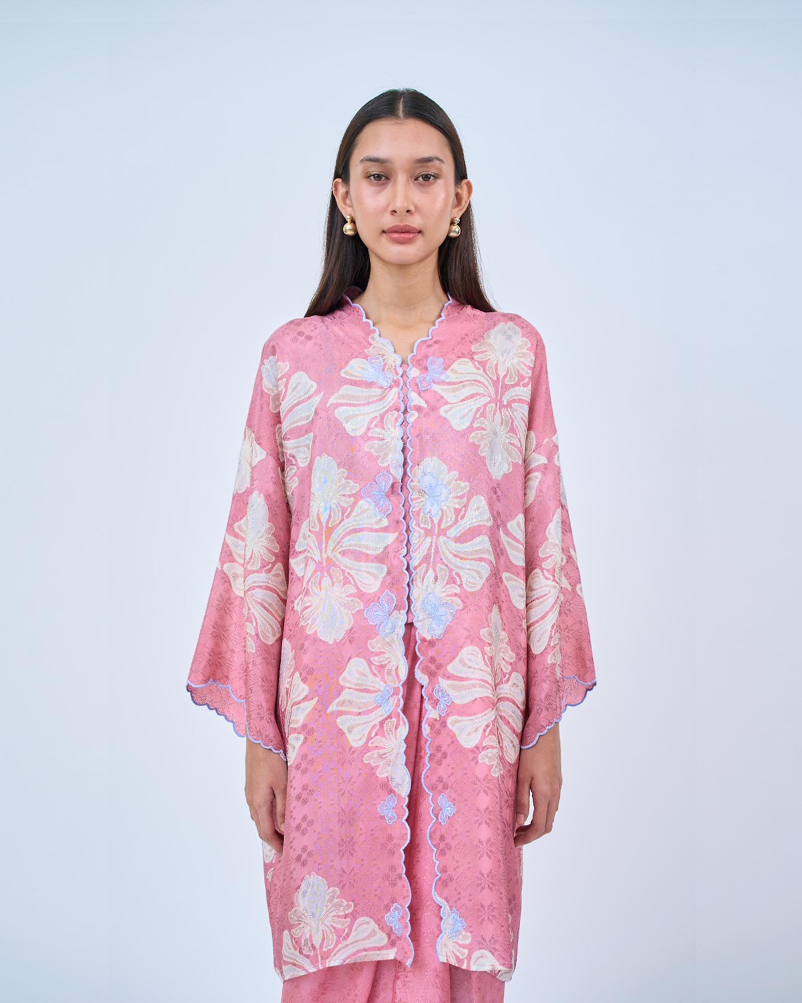 KHADEEJA is a modern kebaya labuh inspired by traditional kebarung silhouettes. Featuring drop shoulders, a straight cut and front snap fastening, it’s made for women who love structure with ease.