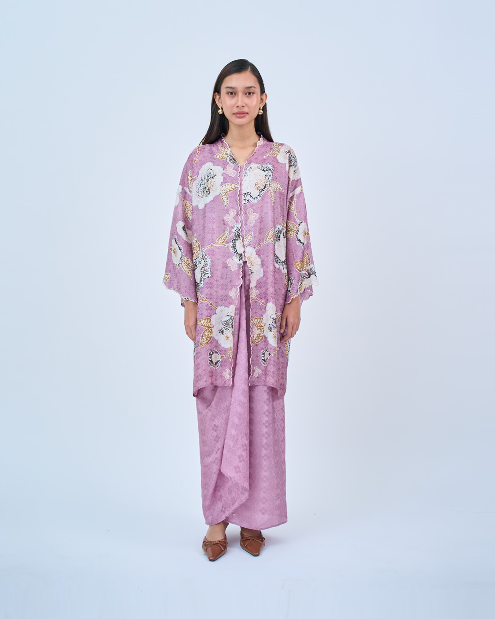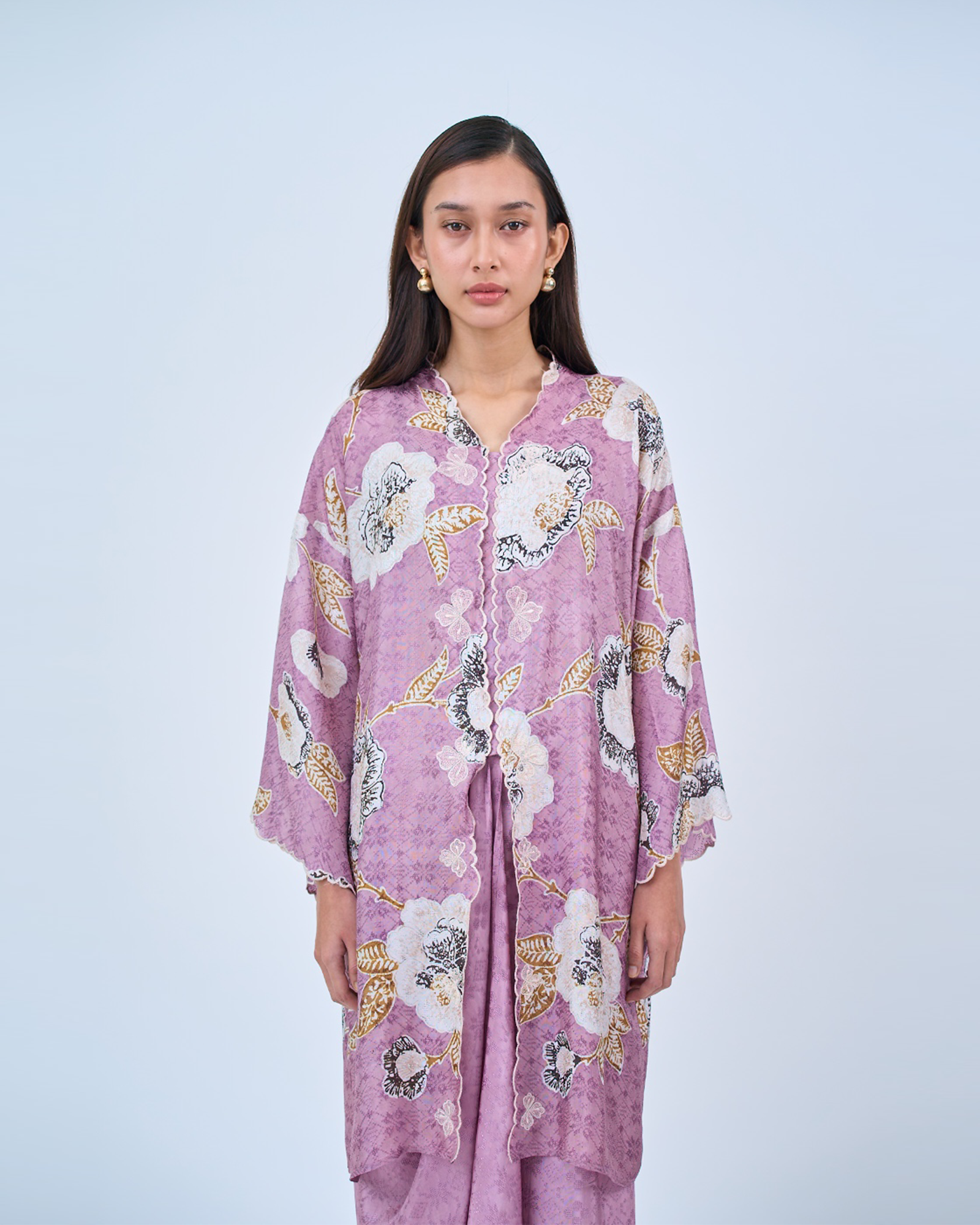 KHADEEJA is a modern kebaya labuh inspired by traditional kebarung silhouettes. Featuring drop shoulders, a straight cut and front snap fastening, it’s made for women who love structure with ease.