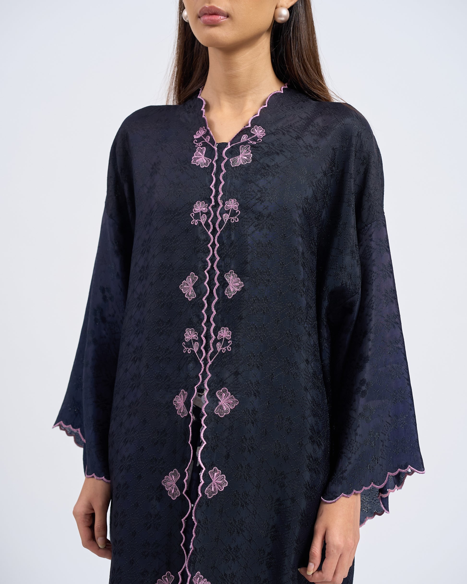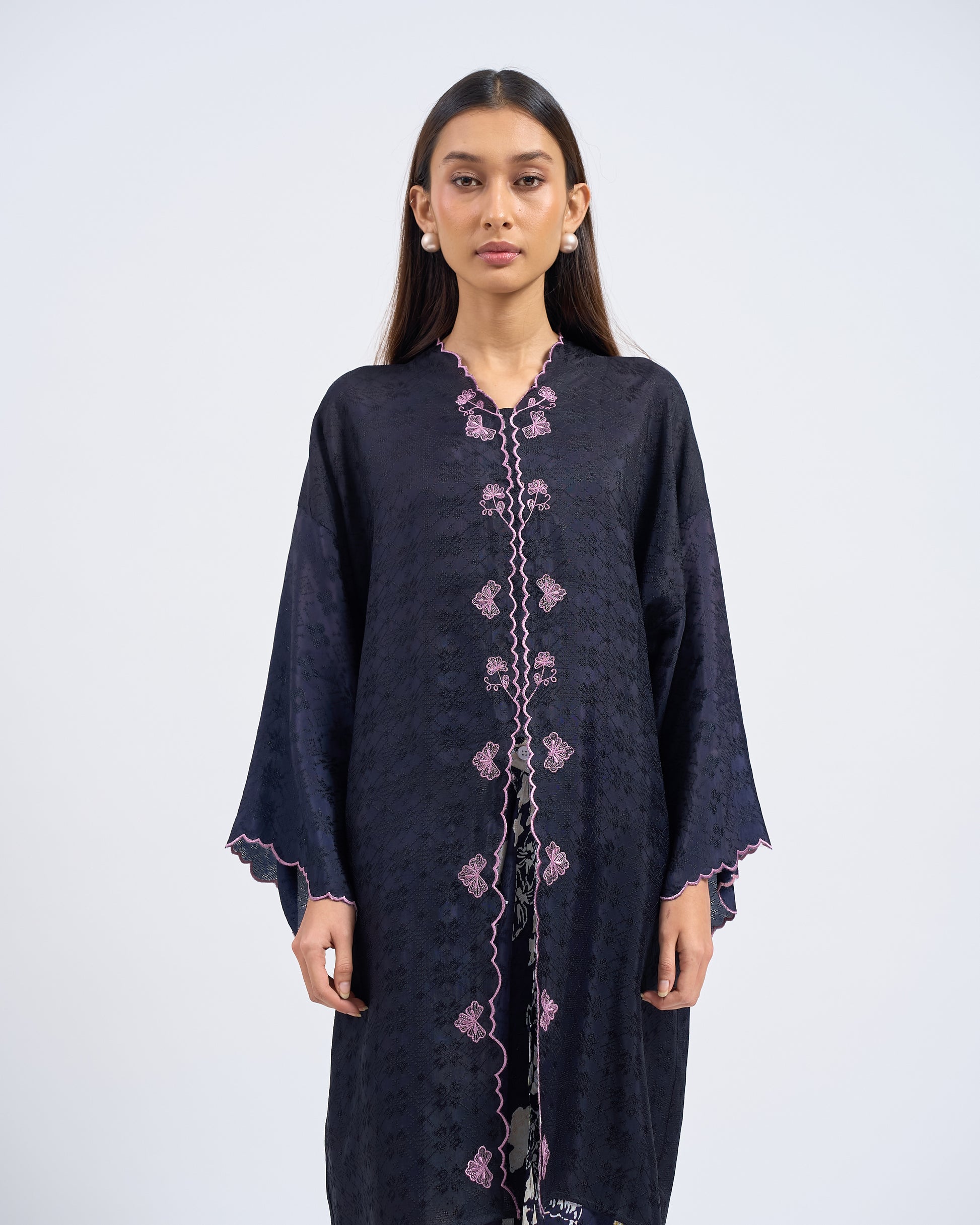 KHADEEJA is a modern kebaya labuh inspired by traditional kebarung silhouettes. Featuring drop shoulders, a straight cut and front snap fastening, it’s made for women who love structure with ease.
