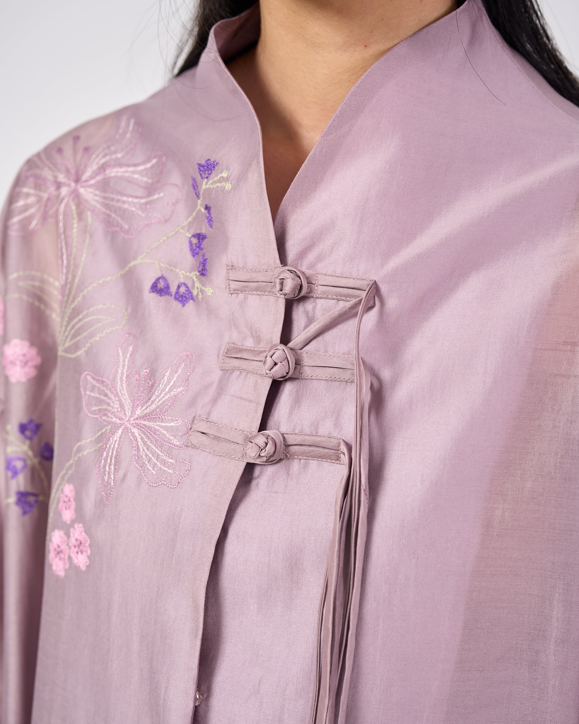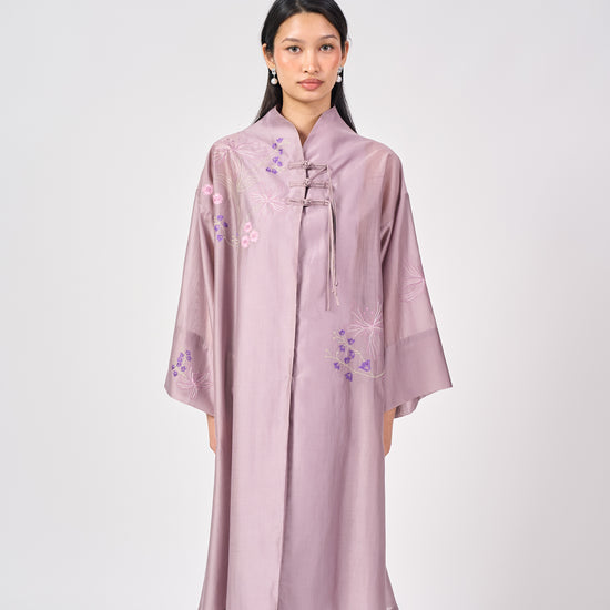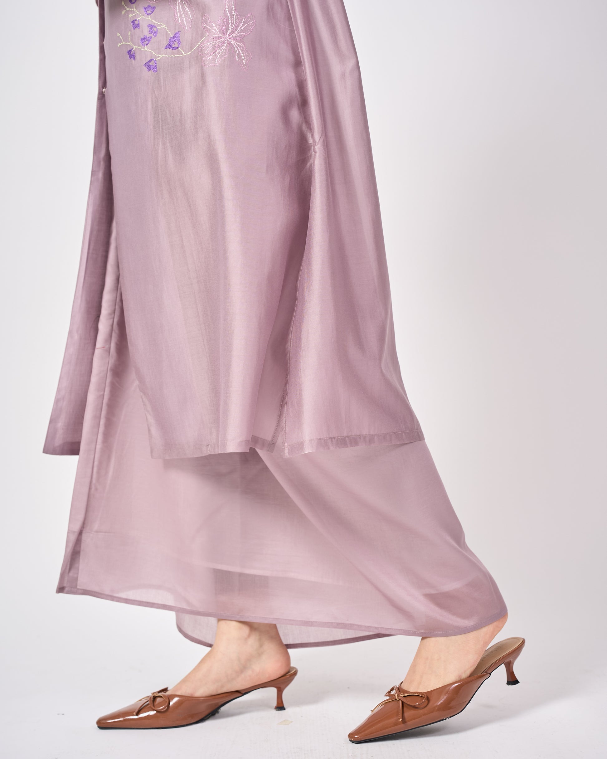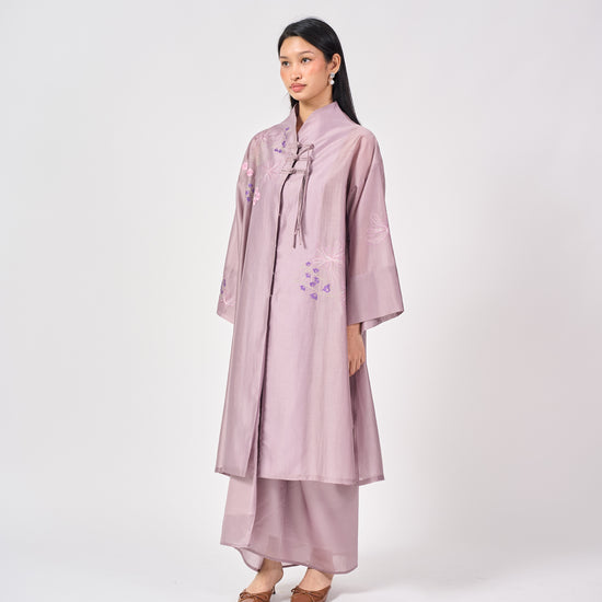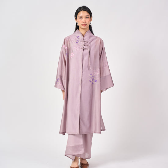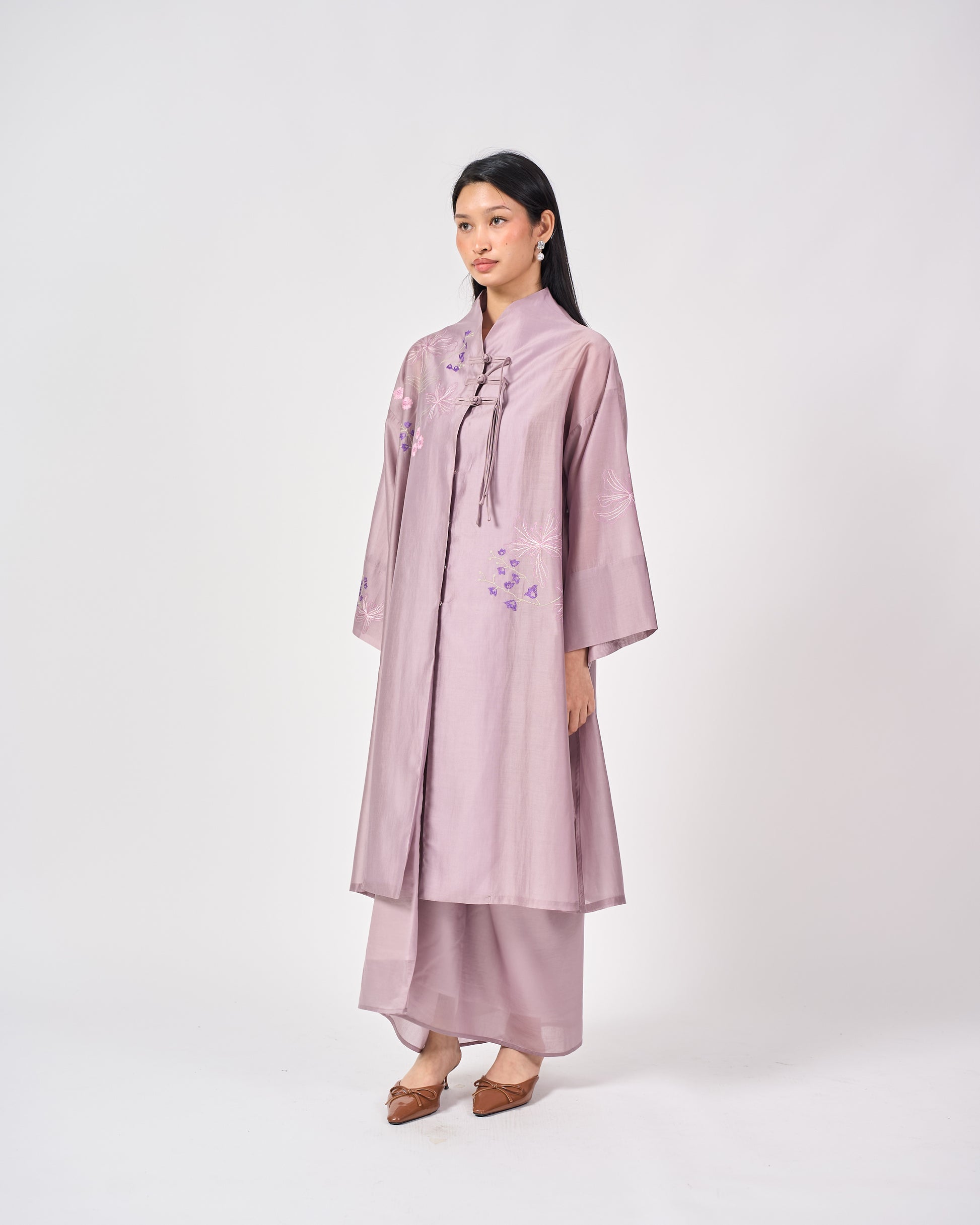 The Nara Kebaya Panjang is a refined reinterpretation of a classic silhouette. The longline top features a sleek mandarin collar with delicate front embroidery that adds soft texture without overwhelming the silhouette
