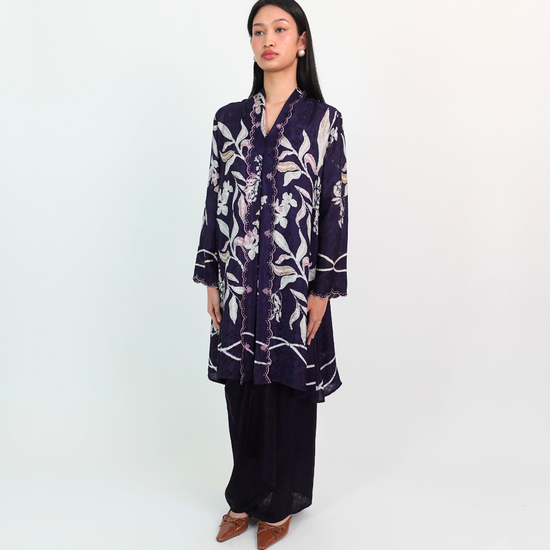 WARDAH Kebarung blends the flair of kebaya and kurung panjang silhouettes. Designed with front snap fastening and crafted fully from our inhouse semi-silk batik print, it’s a THEA Classic.