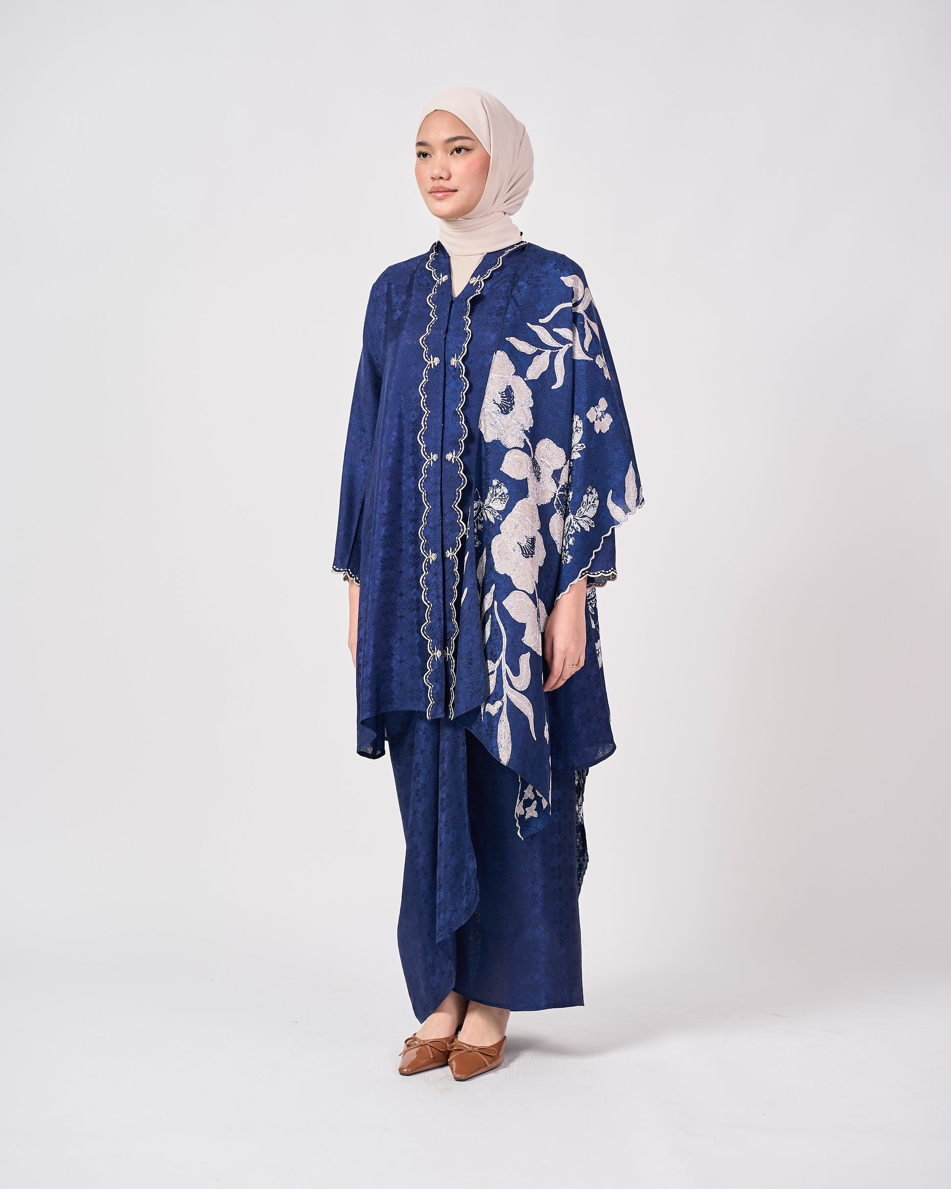 WARDAH Kebarung blends the flair of kebaya and kurung panjang silhouettes. Designed with front snap fastening and crafted fully from our inhouse semi-silk batik print, it’s a THEA Classic.